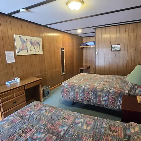 The accommodations at Black Cat Guest Ranch Brule Mines are designed for comfort and relaxation. Each of the 16 spacious rooms boasts cozy wood paneling, plush carpeting, and stunning views of the Rocky Mountain range. Many rooms feature two beds and a full bath, providing a perfect sanctuary after a day of exploration. Enjoy the warmth of community in the central lodge area, complete with a large living room filled with comfortable seating, a grand fireplace, and an extensive collection of books.
